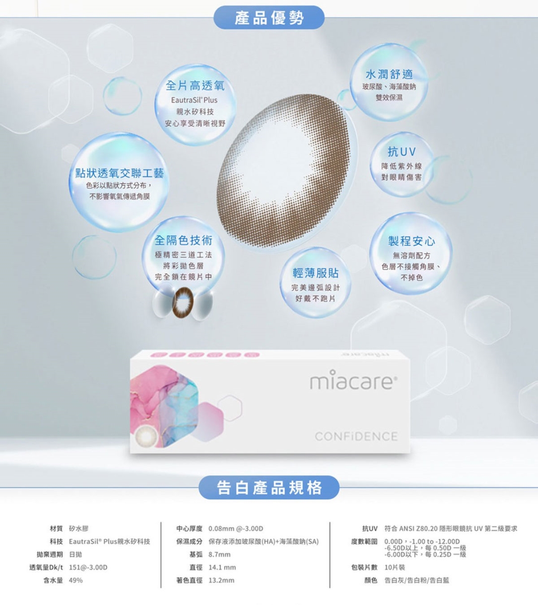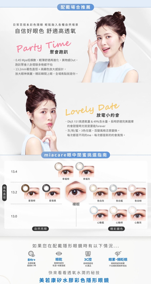 配戴一般隱形眼鏡須經眼科醫師驗光配鏡取得處方,或經驗光人員驗光配鏡取得配鏡單,並定期接受眼科醫師追蹤檢查。本器材不得逾中文仿單建議之最長配戴時數、不得重覆配戴,於就寢前務必取下,以免感染或潰傷。