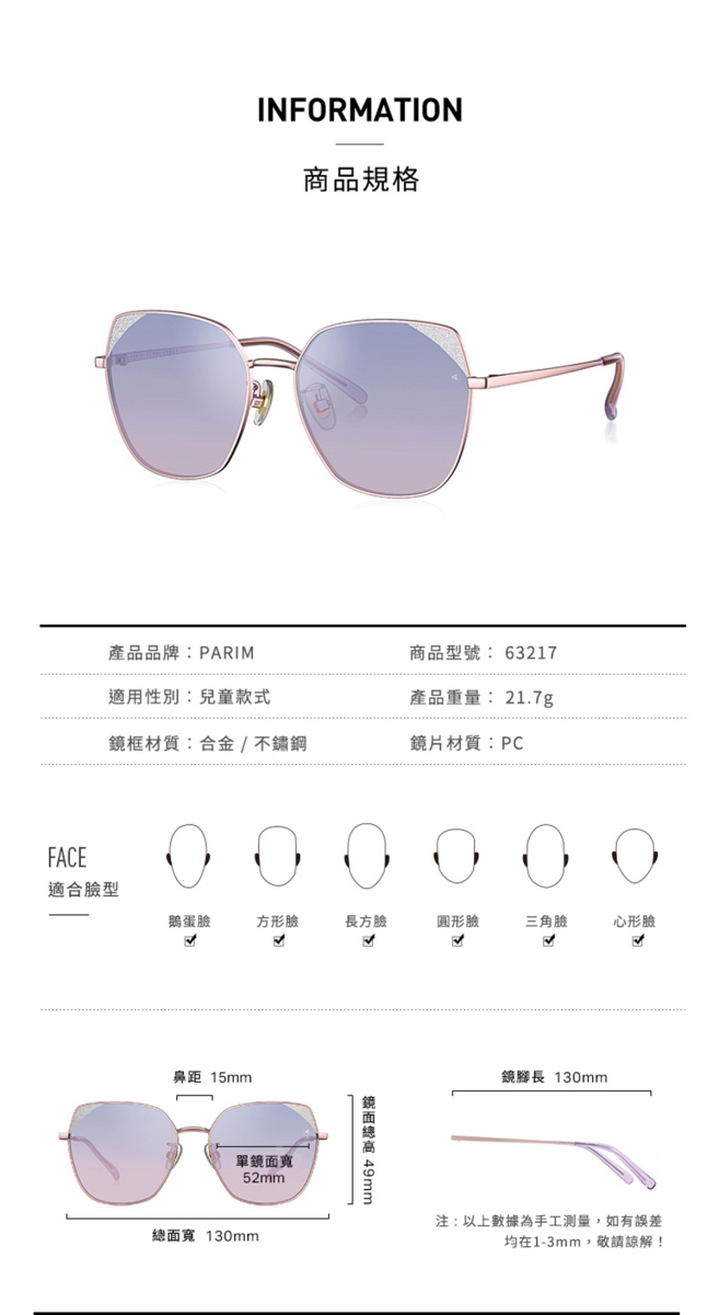 【PARIM兒童墨鏡】紫藍漸進粉時尚貓眼 63217K2