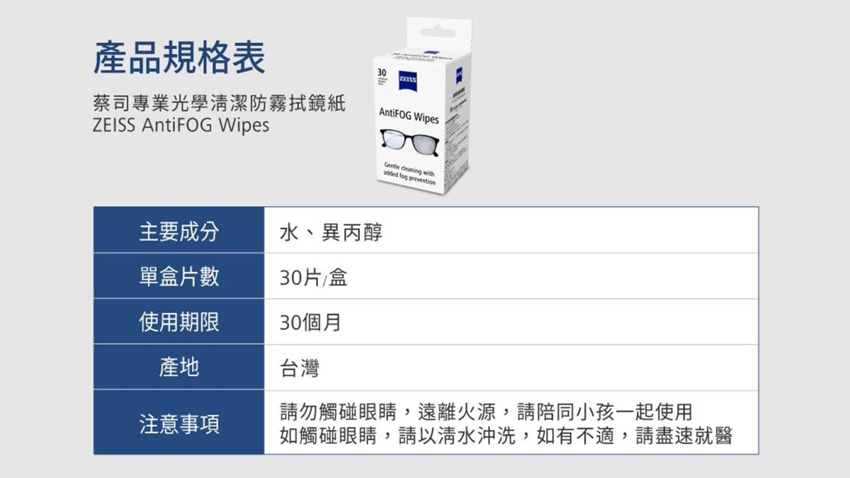 【ZEISS 蔡司】專業光學防霧拭鏡紙 (30入/1盒)