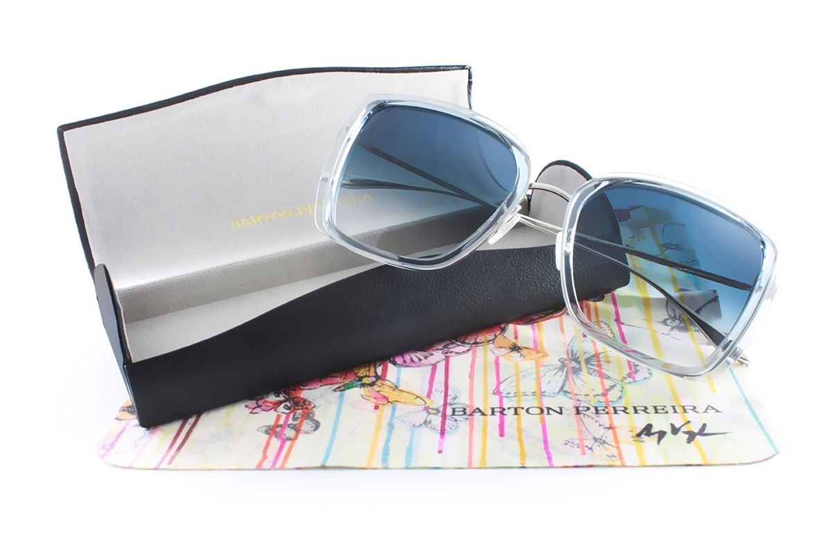 BARTON PERREIRA 美國好萊塢自信時尚-純鈦貓框藍銀★太陽眼鏡 0110-562JV