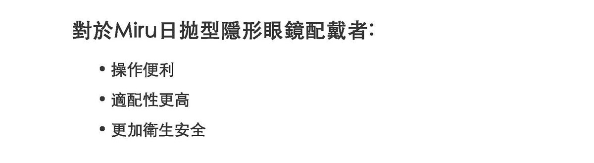 配戴一般隱形眼鏡須經眼科醫師驗光配鏡取得處方,或經驗光人員驗光配鏡取得配鏡單,並定期接受眼科醫師追蹤檢查。本器材不得逾中文仿單建議之最長配戴時數、不得重覆配戴,於就寢前務必取下,以免感染或潰傷。