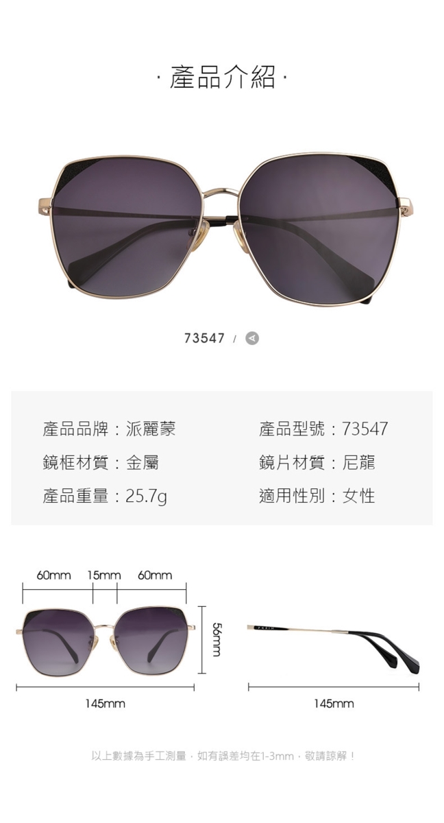 【PARIM 墨鏡】潮流時尚淡金太陽眼鏡 73547K1